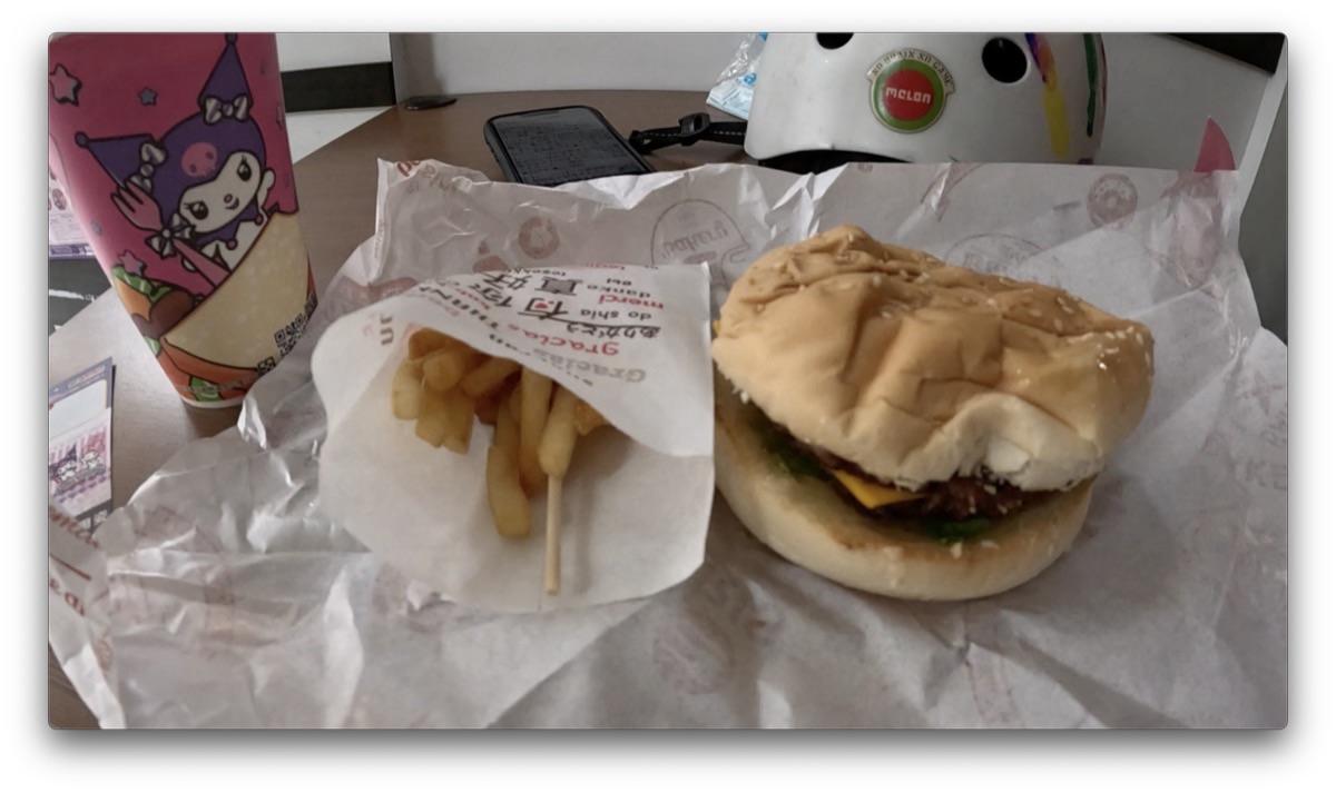 朝食はハンバーガーセットとミルクティーを頂きました。