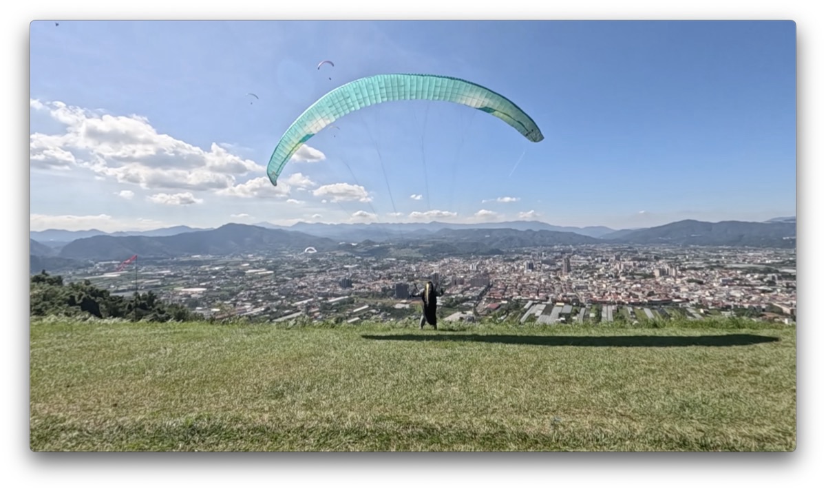 遠くを見ると、日月潭方面に向かって高く飛んでいるパラグライダーが何機か見えます。