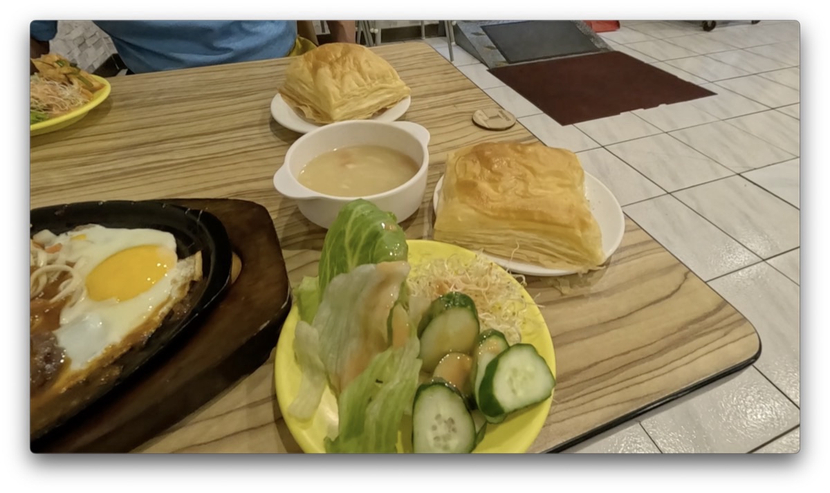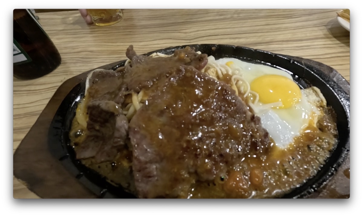 ハタ坊の奢りで、牛ステーキセットをいただきました。