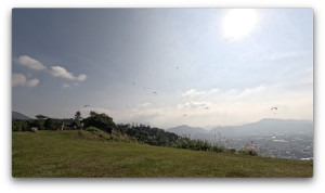 ということで、10機くらいのパラグライダーが、一斉にランディングに降りて行きました。