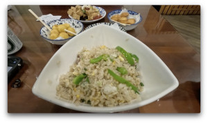 炒飯とイカすり身の揚げ物や芋をあげたもの、豆腐などを頂きました。