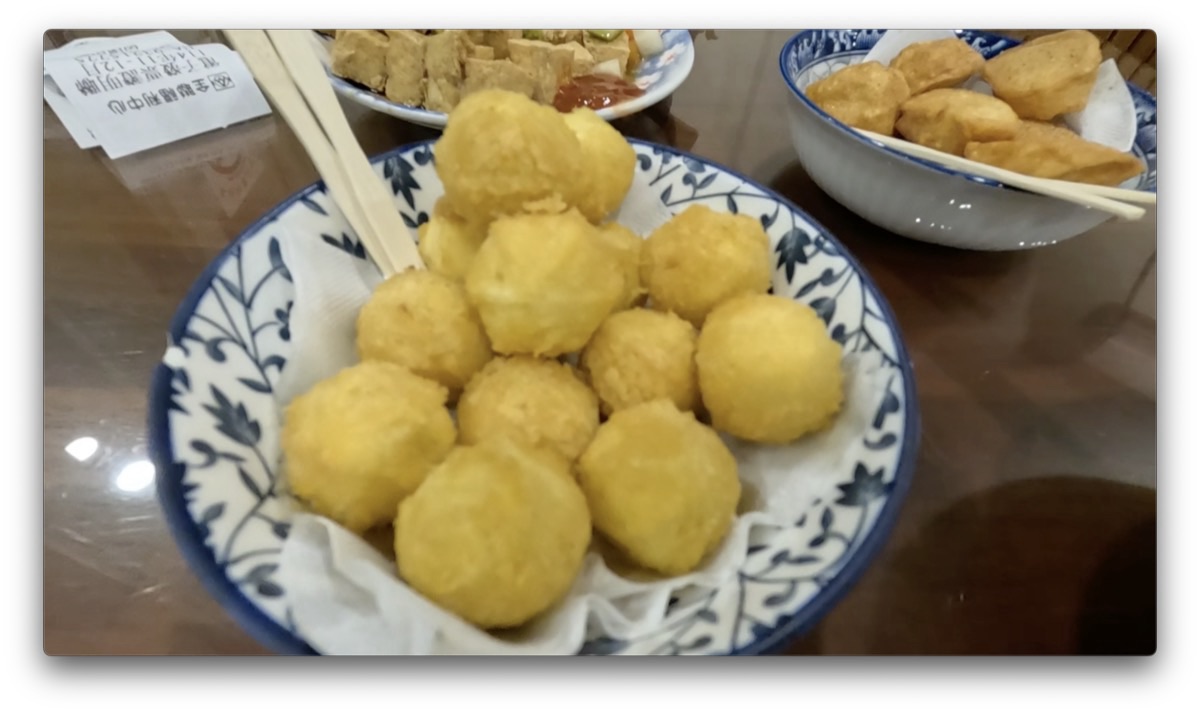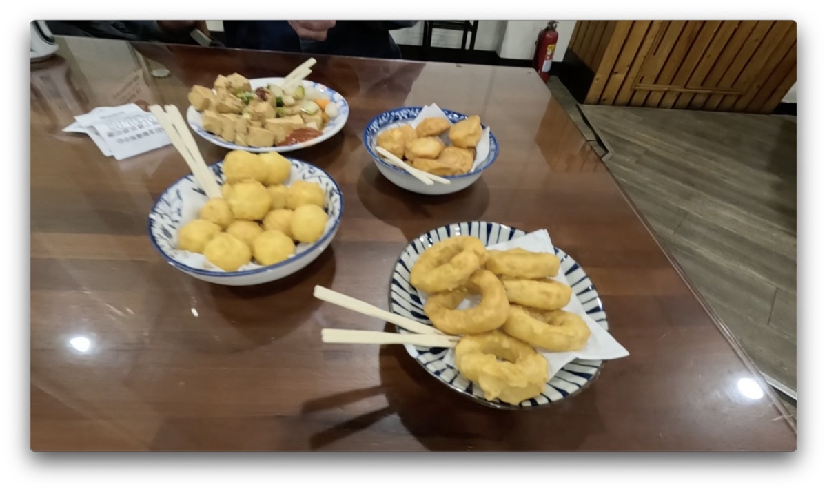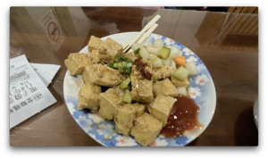 炒飯とイカすり身の揚げ物や芋をあげたもの、豆腐などを頂きました。