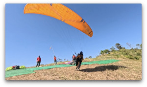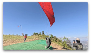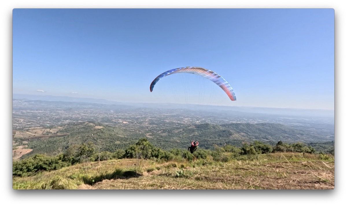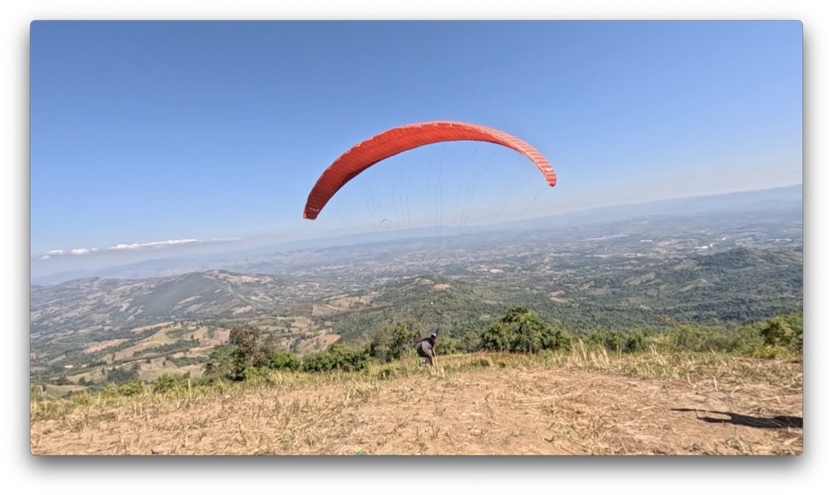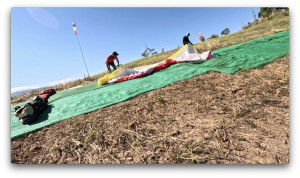 ENZO3で飛んだイ・ユンさんは、テイクオフ下のブッシュをかき分けながら飛んでいき、右翼端のラインを切ったまま飛んでいました。