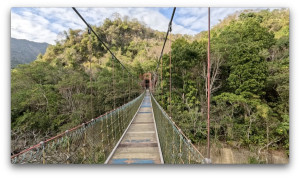 施設は閉まっていたので、近所の鹿塭吊橋に行きました。