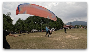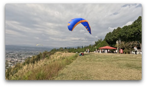春節のお正月なので、パラグライダーのテイクオフにはかなりの観光客が来ています。