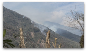 テイクオフの後ろはるか彼方で山火事が発生しています。