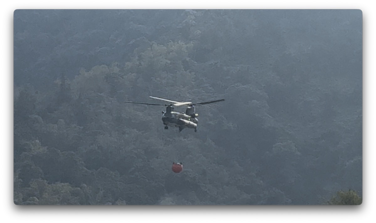 ということで、テイクオフの後ろにある鯉魚譚という池からヘリコプターが水を汲んで消火活動をしています。