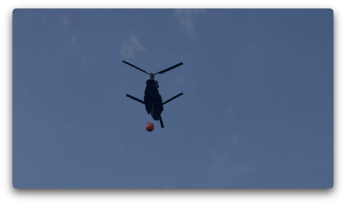 ということで、テイクオフの後ろにある鯉魚譚という池からヘリコプターが水を汲んで消火活動をしています。