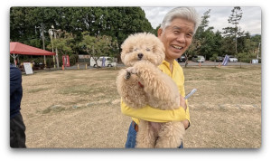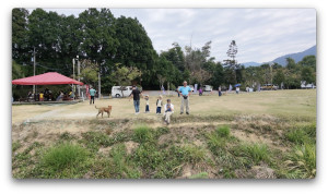 犬の散歩に来ている人たちがいます。