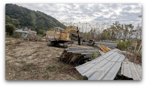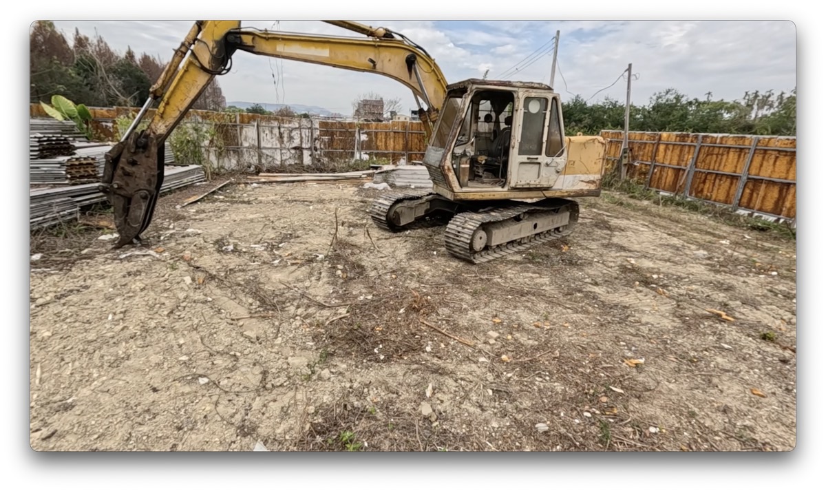 ランディングの奥に、ショベルカーや資材を置いている一角があります。