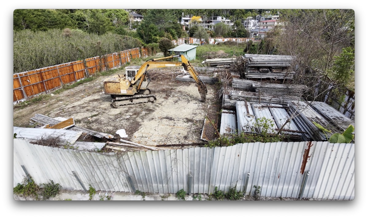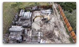 さて、ランディングの一角には、重機を置いた資材置き場があります。