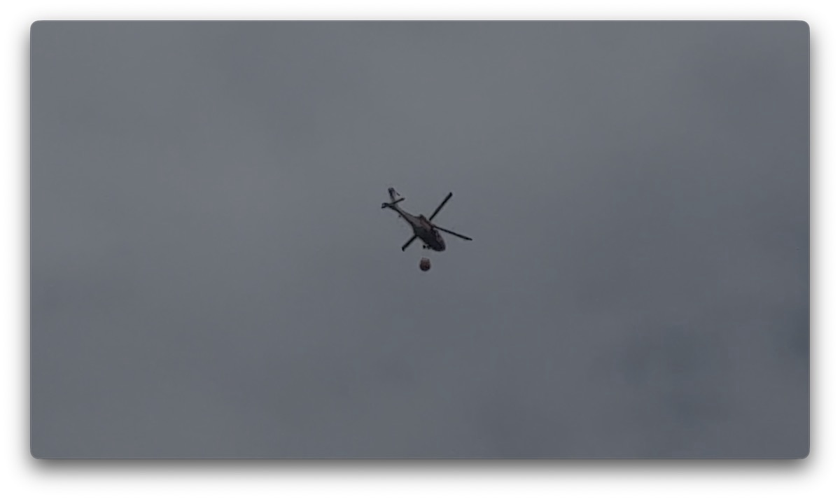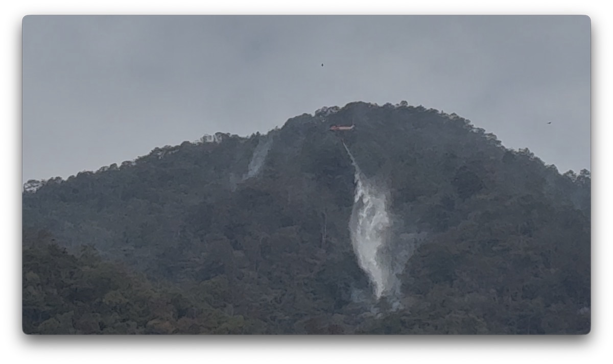 消防のヘリコプターも飛んで、消化活動を行っています。